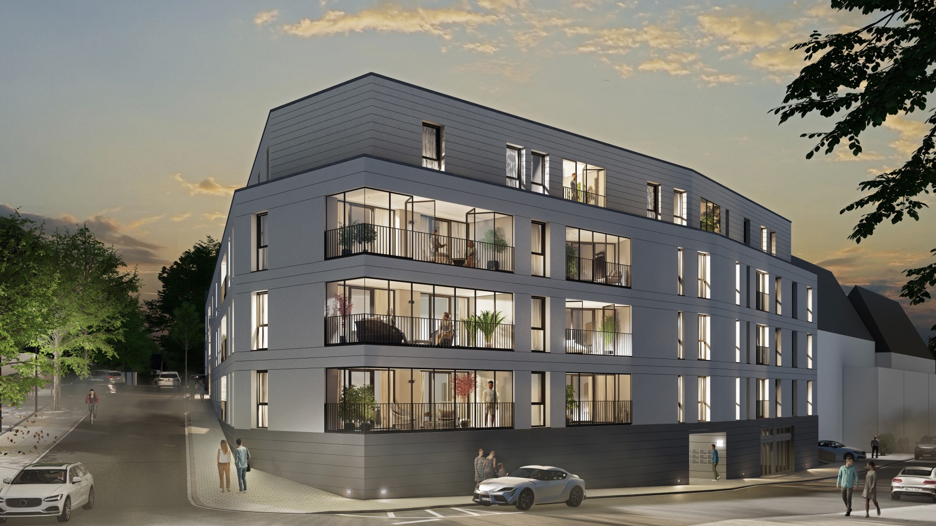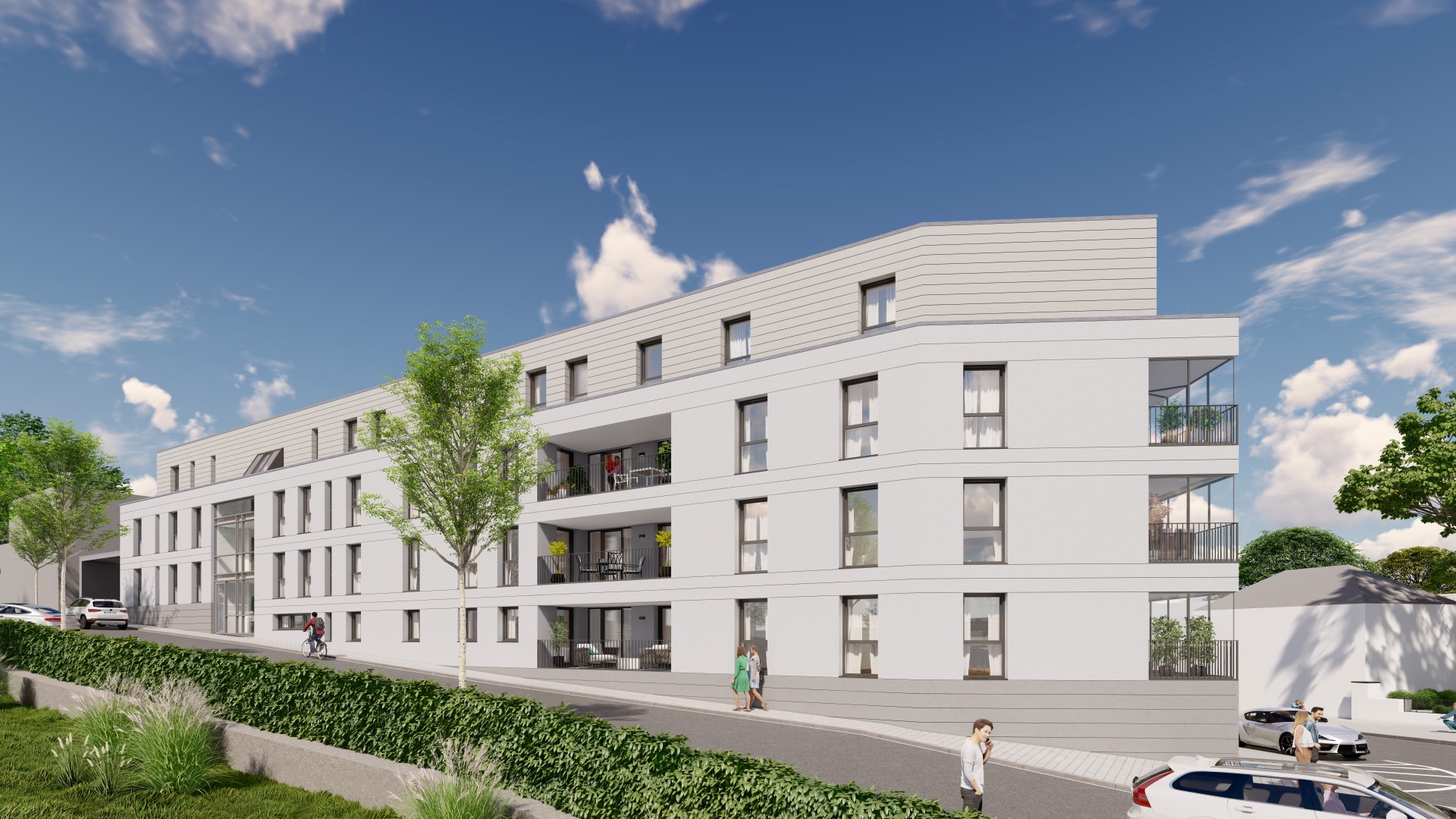An der Kupferdreher Straße und der Benderstraße in Essen-Kupferdreh wird in Kürze der Neubau von 38 modernen Mietwohnungen, verteilt auf zwei Gebäude, beginnen. Die barrierearmen Wohnungen verteilen sich auf 2,5 bis 4,5 Räume mit Wohnflächen von 49 bis 144 m². Die Erdgeschosswohnungen verfügen über Gärten und die Wohnungen in den Obergeschossen erhalten großzügige Balkone. Die im Staffelgeschoss gelegenen Wohnungen überzeugen zum Teil mit einer weitläufigen Dachterrasse. Ein Aufzug ermöglicht einen stufenlosen Zugang zu allen Wohnungen.